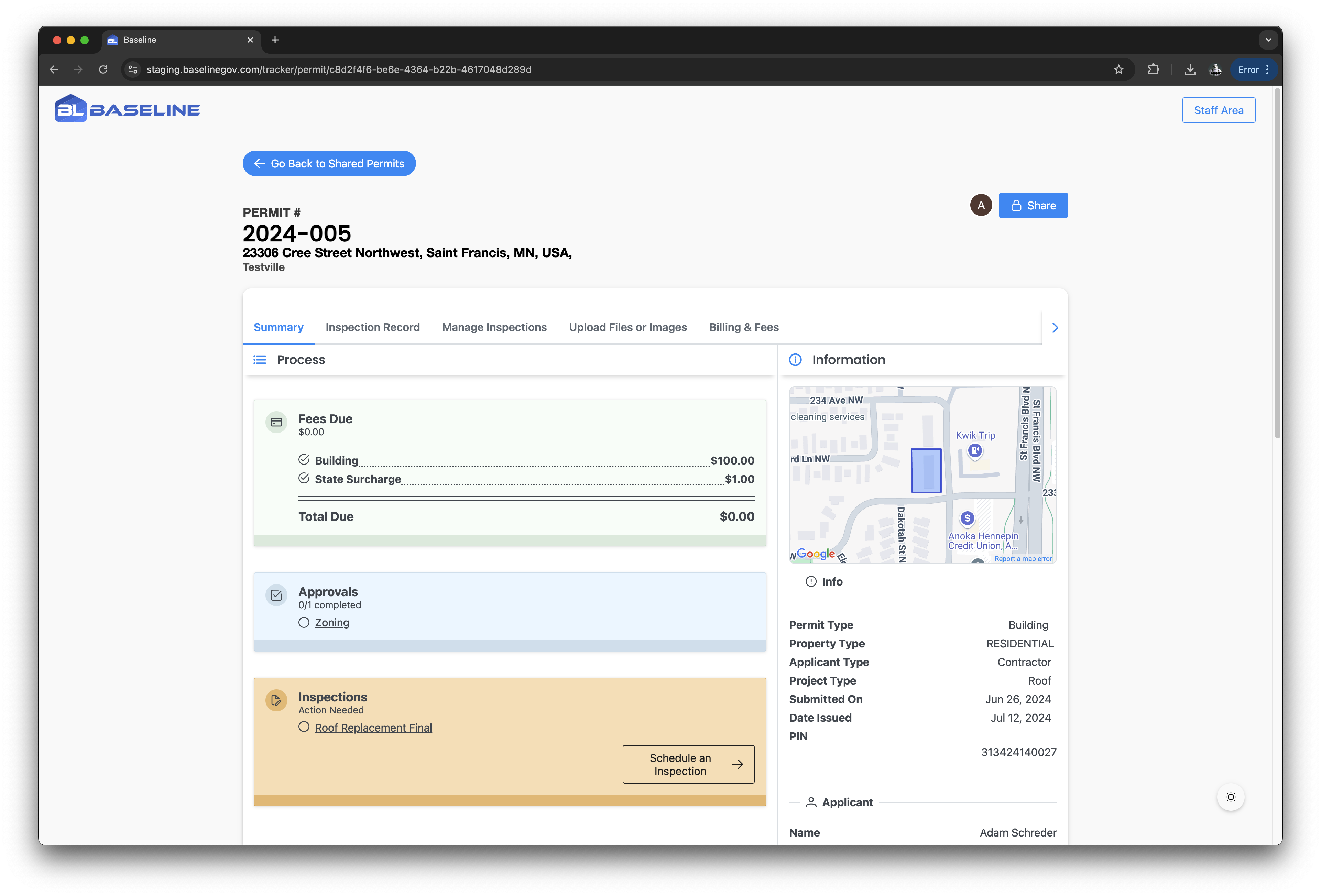 The Baseline platform helps inspectors with their routes through scheduling, easy inspection management on mobile and desktop, the ability to record results and send instant email updates to applicants, and more.